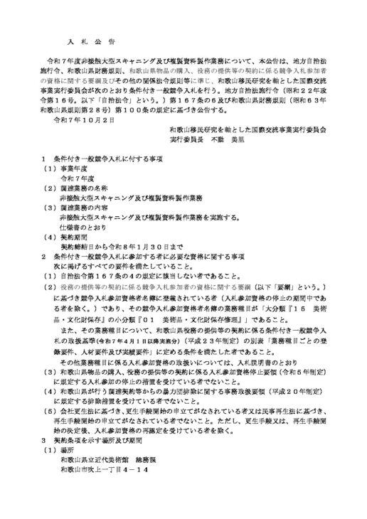 < 令和7年度非接触大型スキャニング及び複製資料製作業務【和歌山移民研究を軸とした国際交流事業実行委員会実施】