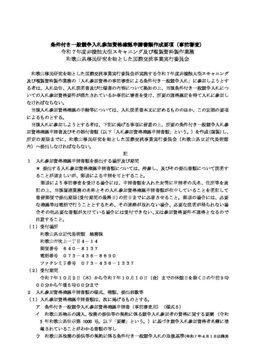 < 令和7年度非接触大型スキャニング及び複製資料製作業務【和歌山移民研究を軸とした国際交流事業実行委員会実施】
